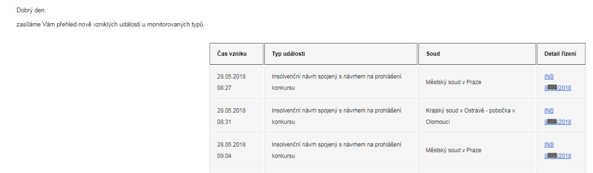 Každý den vám přijde e-mail s přehledem vámi vybraných událostí (osob) u vámi vybraného soudu (nebo všech osoudů).