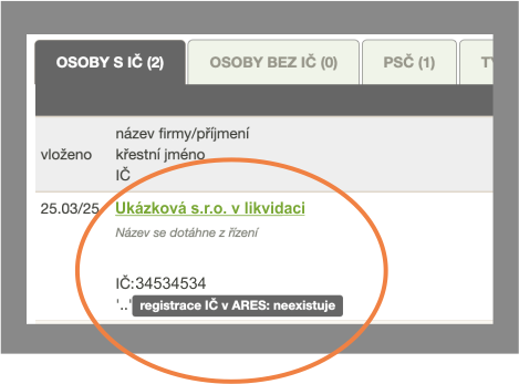 + ihned vidíte, zda je některá ze zúčastněných osob v insolvenci
