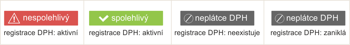 + stav registrace DPH - aktivní, zaniklá, neexistuje (neplátce)